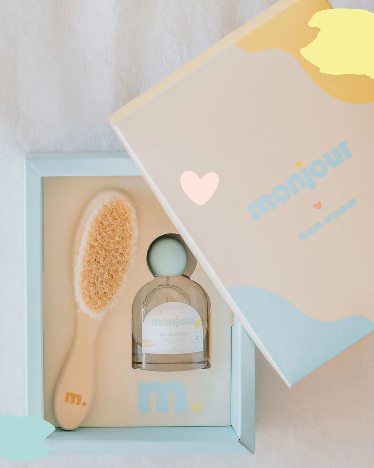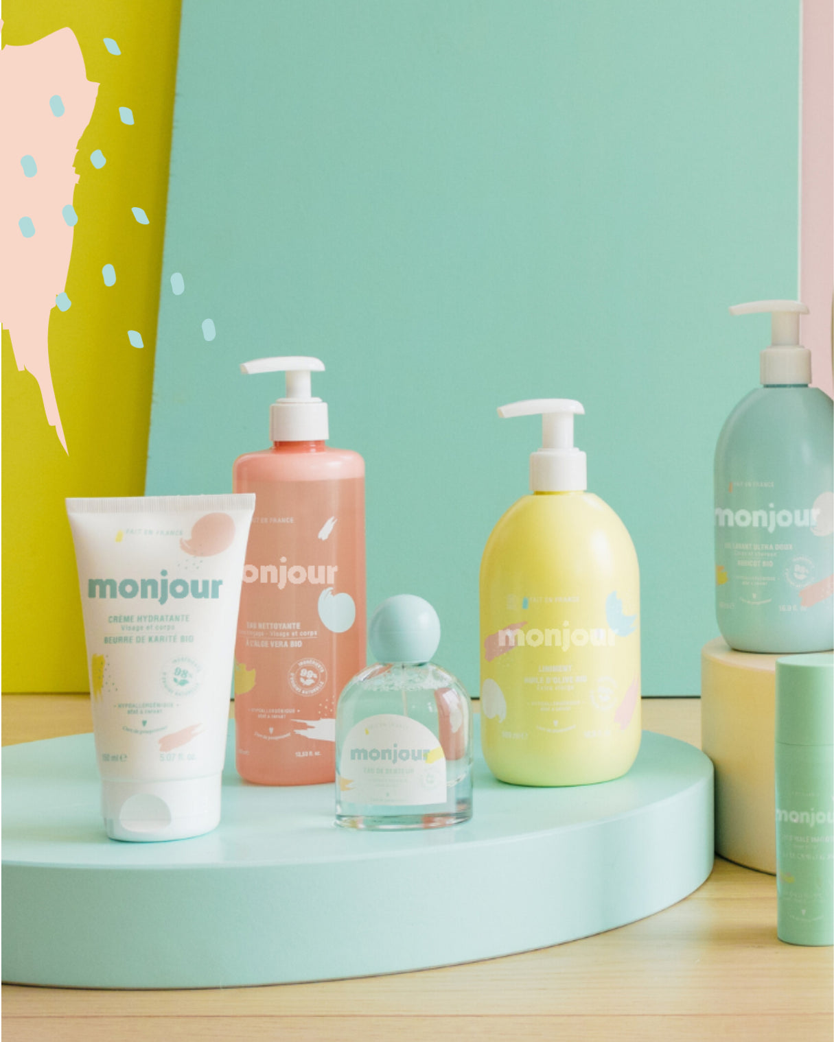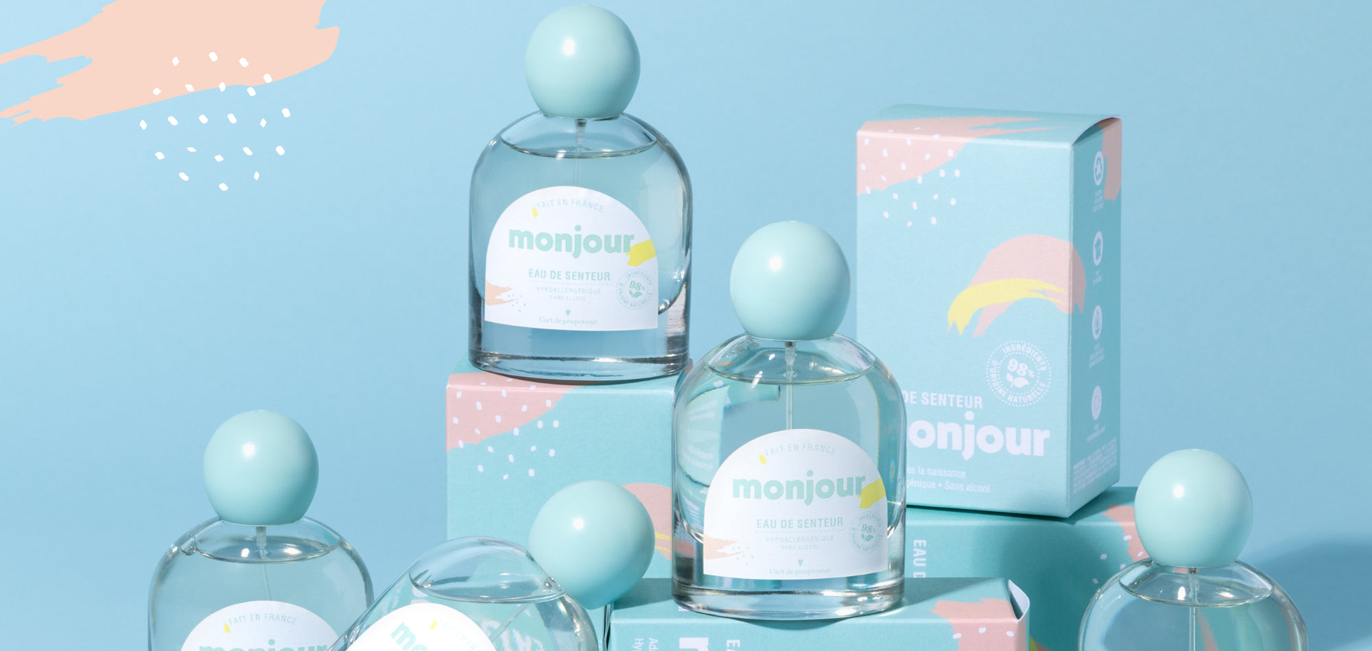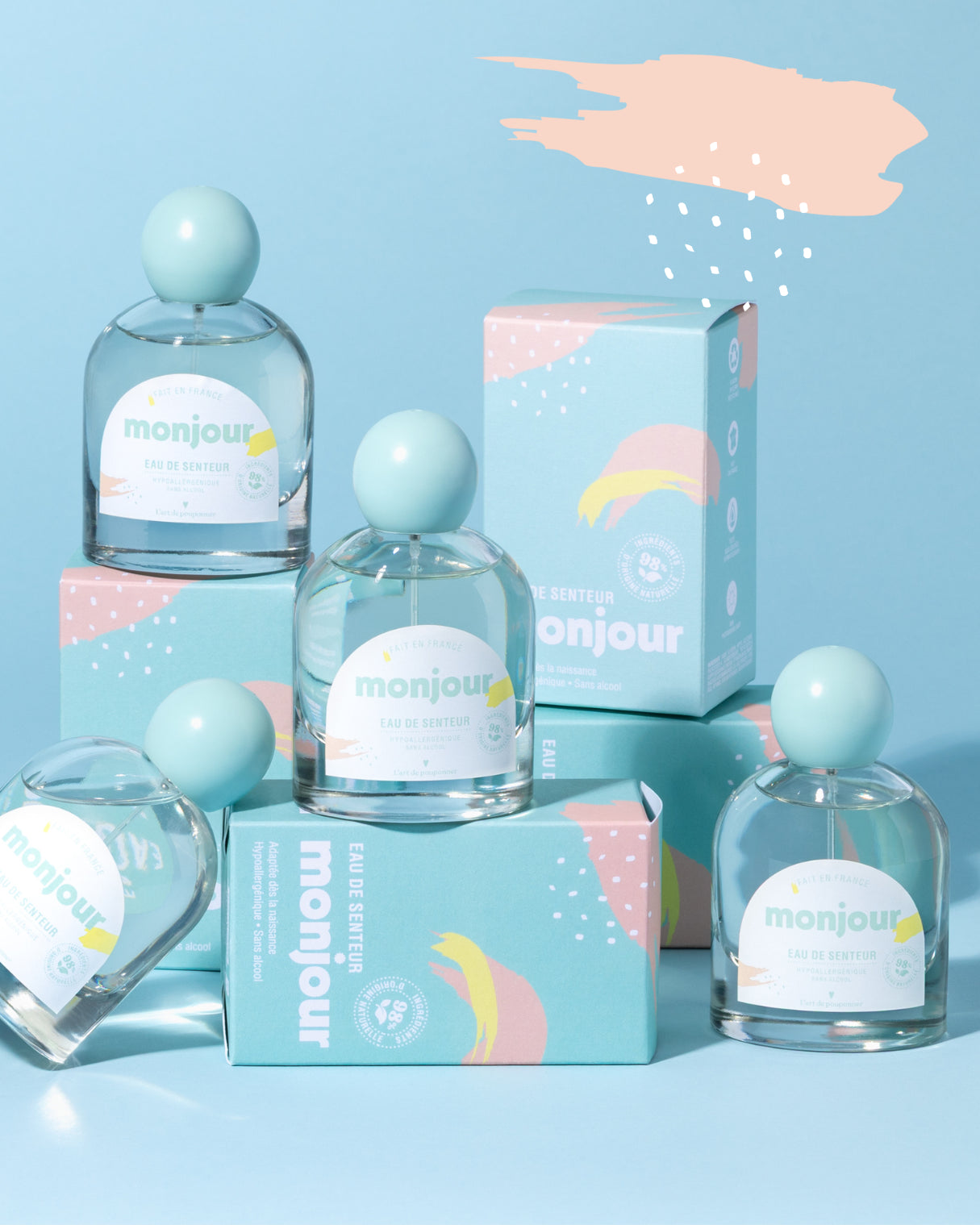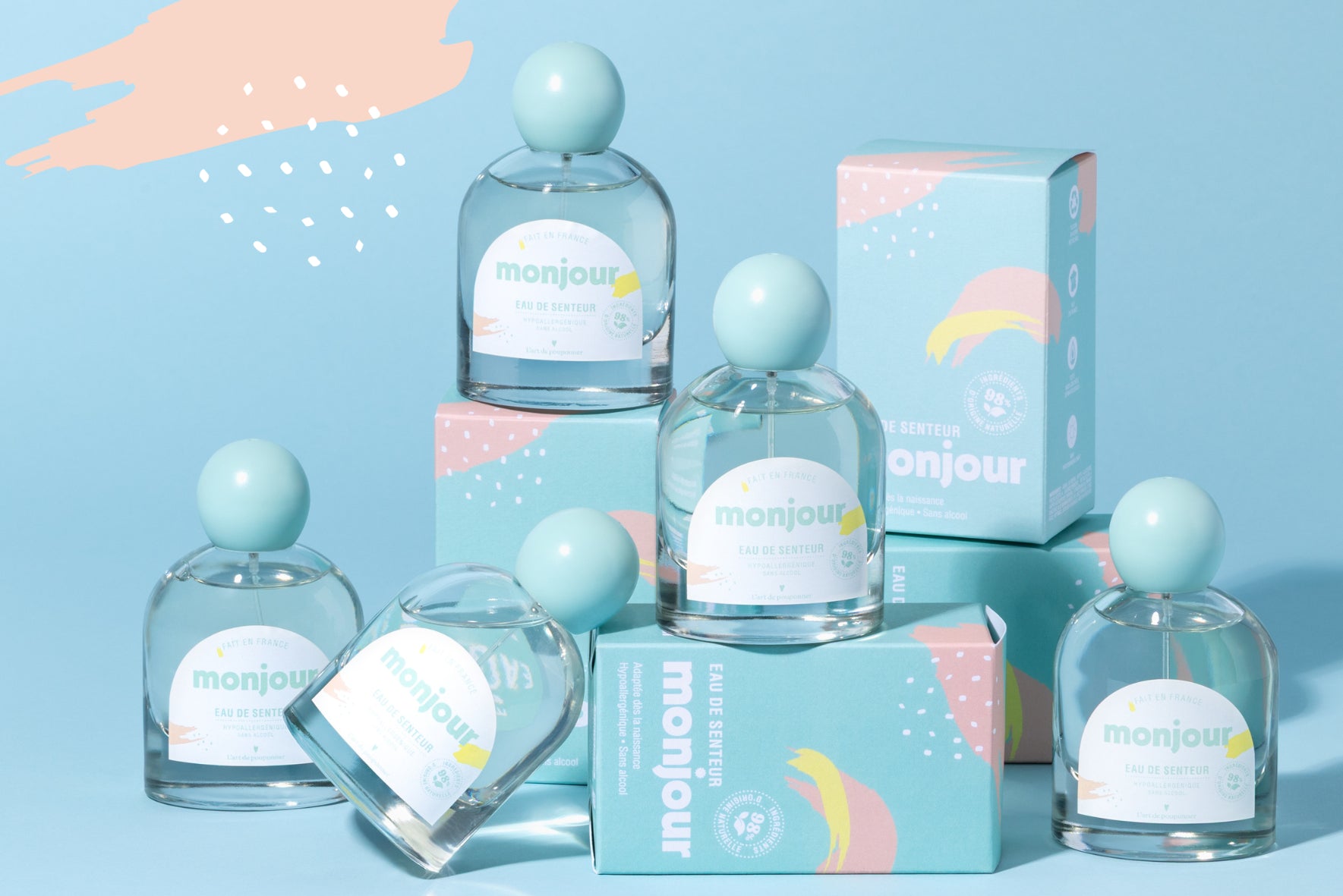 Nous voulions une marque qui ne fait pas de compromis entre le plaisir des sens et la composition des produits. Notre liniment est sans parfum, les autres produits de la gamme contiennent entre 0,1% et 0,7% de parfum, signature olfactive de Monjour. Ce parfum a été élaboré pour la peau sensible des tout-petits, il ne comprend pas d’allergène, ni d’alcool et adapté dès la naissance. Sa douce odeur, à base de fleur d’oranger et de musc blanc, a été composée à Marseille, par un nez professionnel.