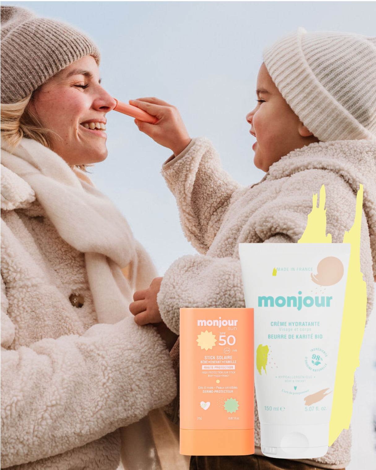 Chez Monjour, nous avons à cœur de respecter l’environnement et la peau délicate de nos tout-petits. Nous avons sélectionné avec notre laboratoire en Haute-Savoie, des actifs biologiques et des ingrédients nobles.