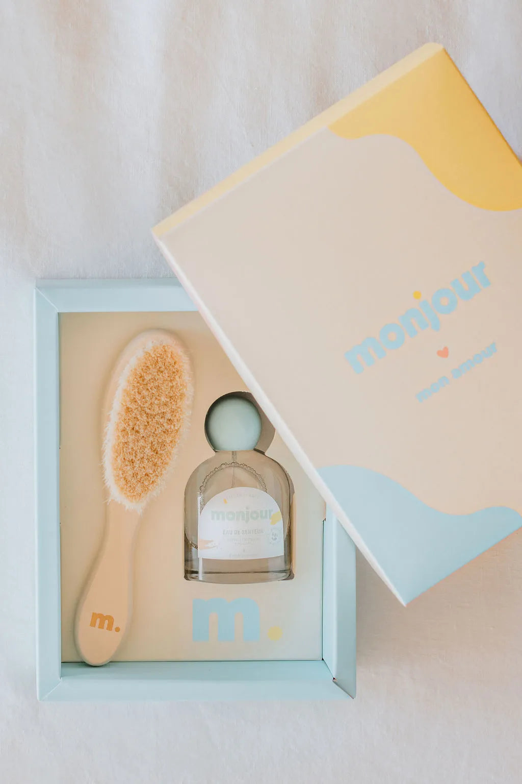 We wanted a brand that does not compromise between the pleasure of the senses and the composition of the products. Our liniment is perfume, the other products in the range contain between 0.1% and 0.7% of perfume, Olfactive signature of Monjour. This perfume has been developed for the sensitive skin of toddlers, it does not include allergen or alcohol and adapted from birth. Its sweet smell, made from orange blossom and white musk, was composed in Marseille, by a professional nose.