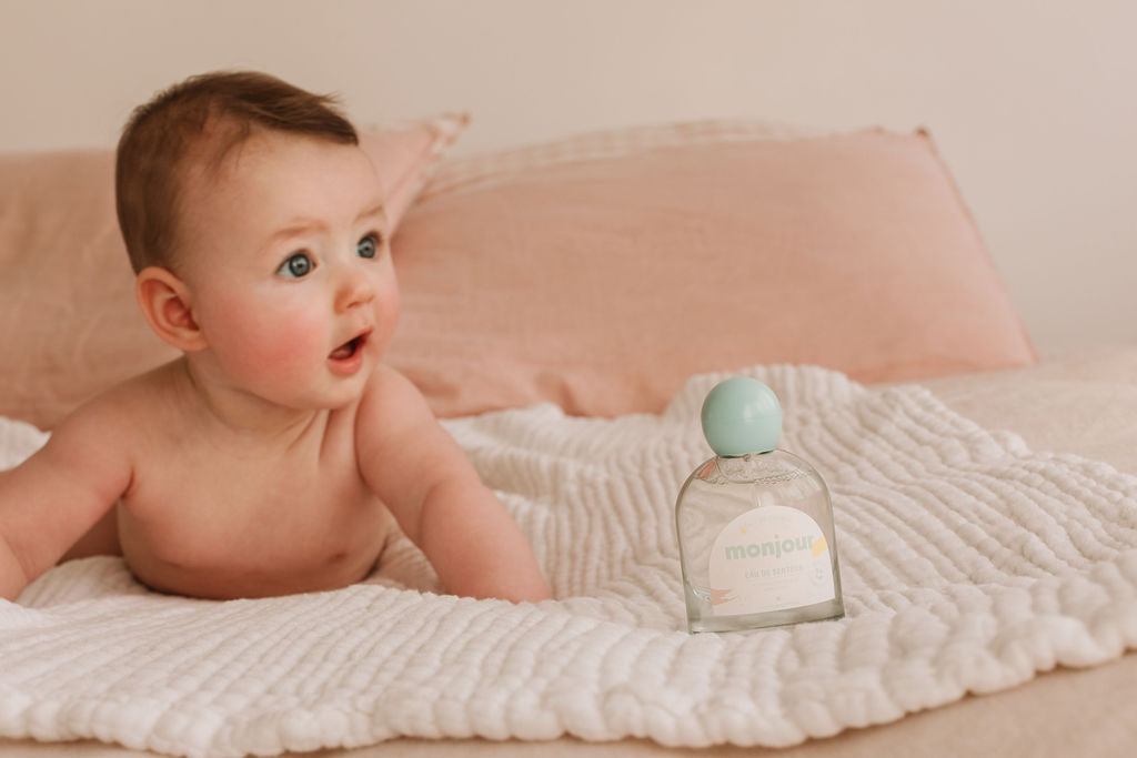 We wanted a brand that does not compromise between the pleasure of the senses and the composition of the products. Our liniment is perfume, the other products in the range contain between 0.1% and 0.7% of perfume, Olfactive signature of Monjour. This perfume has been developed for the sensitive skin of toddlers, it does not include allergen or alcohol and adapted from birth. Its sweet smell, made from orange blossom and white musk, was composed in Marseille, by a professional nose.
